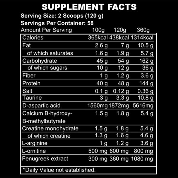 KEVIN LEVRONE ANABOLIC MASS is an exceptional combination of a complex of complete proteins and carbohydrates, supplemented with a number of valuable additives. The supplement has been prepared for people aiming to increase their body mass and develop a muscular physique, especially fans of intensive strength and endurance training. The formula has been enriched with e.g. creatine monohydrate, DAA, HMB, fenugreek extract or taurine, providing multidimensional support in even the most intensive efforts to increase muscle mass and strength. The nutrient, in the form of an easily dissolvable powder, makes it possible to prepare an exceptionally tasty shake,