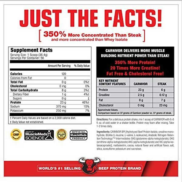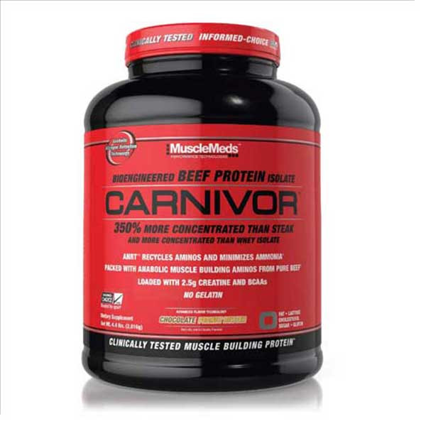 It has long been known that bodybuilders and strength athletes consume high amounts of beef to help build muscle and increase strength. The muscle building power of beef cannot be disputed. Ask most any bodybuilder and they will tell you that they make their biggest muscle gain and feel their strongest when they eat beef. Now, thanks to the development of an advanced bioengineered beef protein, MuscleMeds has formulated a highly anabolic muscle building protein. Carnivor is unlike any other protein supplement in existence.